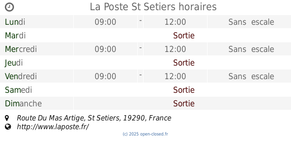 It is also possible to : Modifier ces HEURES D'OUVERTURE of Branche La Poste Dans St Setiers, Route Du Mas Artige,